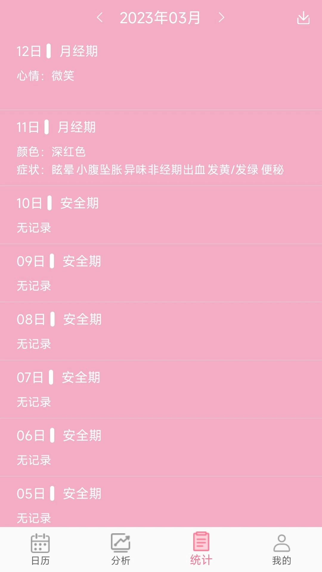 3、使用女生例假记录姨妈可以清楚的记录各类不同的信息,让用户了解更省心。