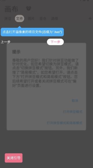 2、点击“文件”可以打开画像素专用格式(.hxs)的文件