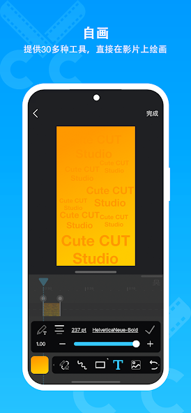 CuteCUT视频制作支持视频、照片、绘图、文本、音乐和录音六类素材的叠加编辑。CuteCUT视频制作下载里提供最多4个视频轨道支持,可以同时处理多个素材,提升视频创作效率。内置支持在视频上直接绘制,提供30多种编辑工具,灵活调节透明度、边框、阴影还有支持HD、SD、正方形和竖屏模式,等效果!