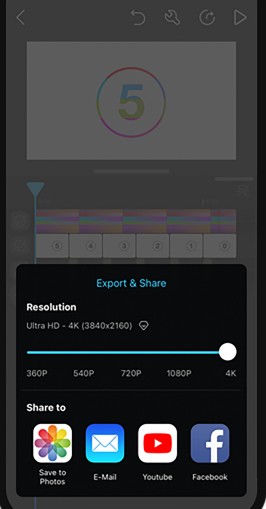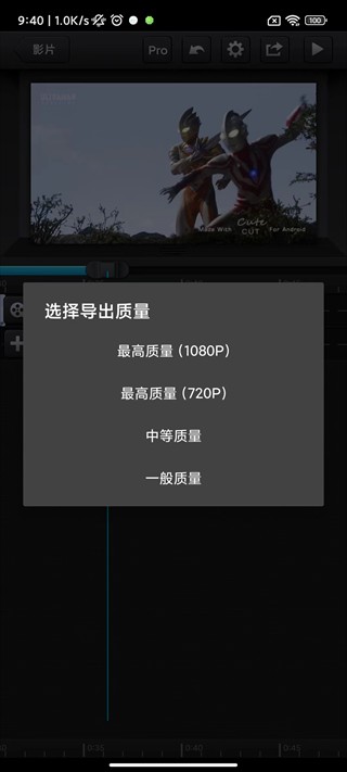 11、点击右上方分享按钮即可导出保存视频,此时选择所导出的视频质量;