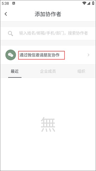 5、最后在添加权限的页面上点击“通过微信邀请朋友协作”进行分享即可。
