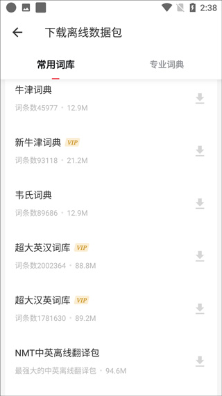 完整收录学习型牛津词典、新牛津英汉双解大词典、韦氏大学英语词典、柯林斯COBUILD高级英汉双解词典、新世纪日汉双解大辞典、龙朝韩中词典,中韩词典等权威词典,海量英汉、汉英词汇和例句,满足商务英语、四六级等语言翻译学习需求。
