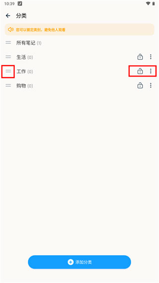 1、主页上有三个默认分类栏,点击末尾的加号即可新建分类