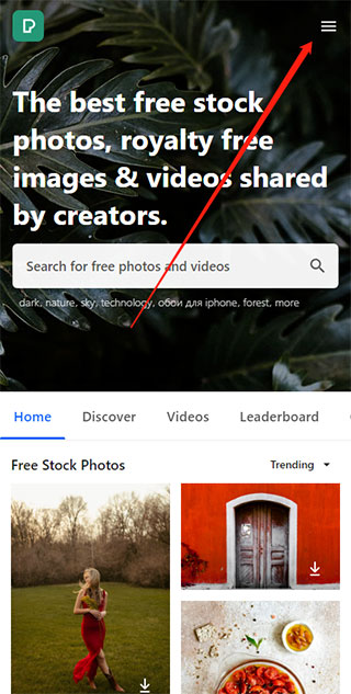 1、进入pexels安卓中文版,点击右上角菜单栏