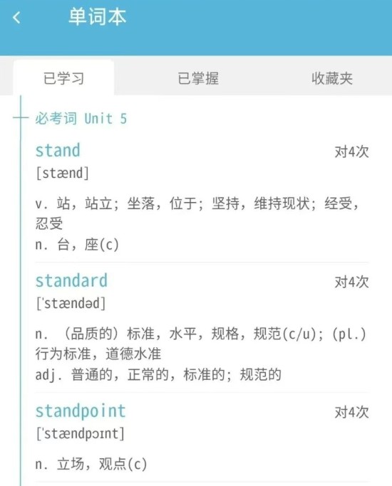 3、【单词本】:用户已经学习掌握的词汇都会记录在单词本里,使用户随时了解学习进度。