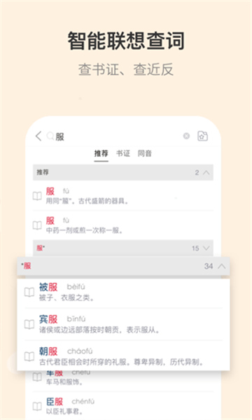 2、便捷查词:支持直接搜索、按拼音和部首检索、通知栏快捷查词。